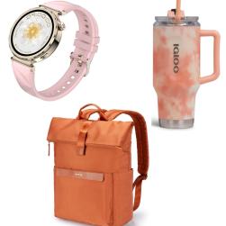 COMBO MOCHILA FTX MARRON ROJIZO + VASO TERMICO CON PAJITA NARANJA + SMARTWATCH FTX GOLD ROSA